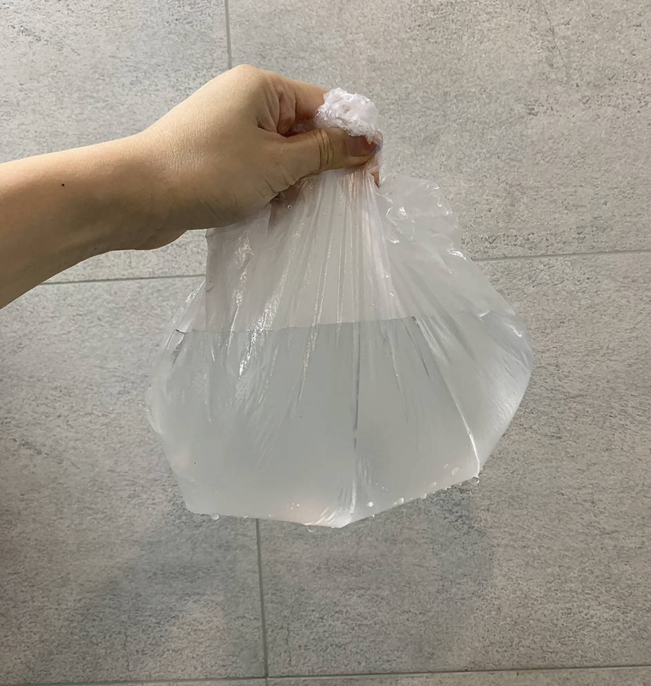 因为它本身是用来套碗盘的,所以材质是加厚的,拎起来不易破,比浴帽那种材质结实很多,难怪妈妈们都选食品级的保鲜膜套,而不是浴帽呢。