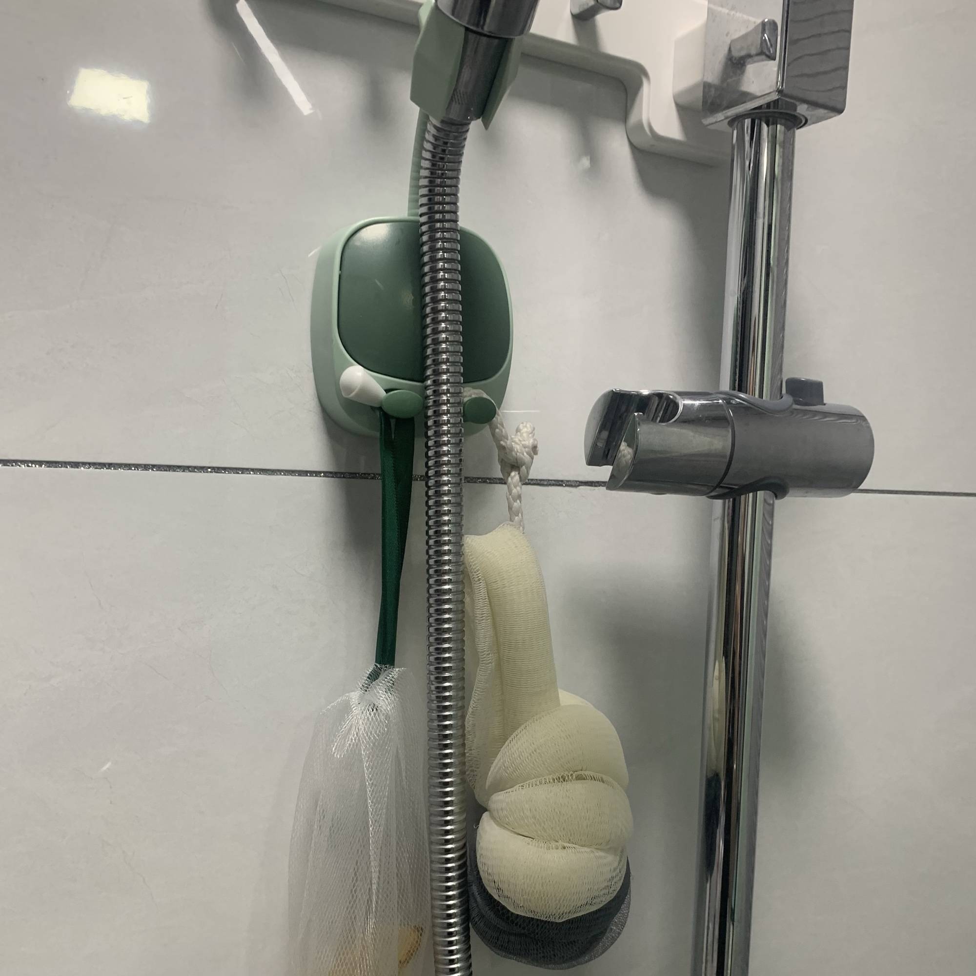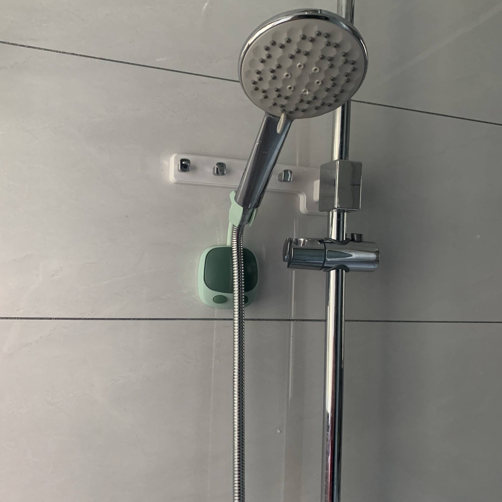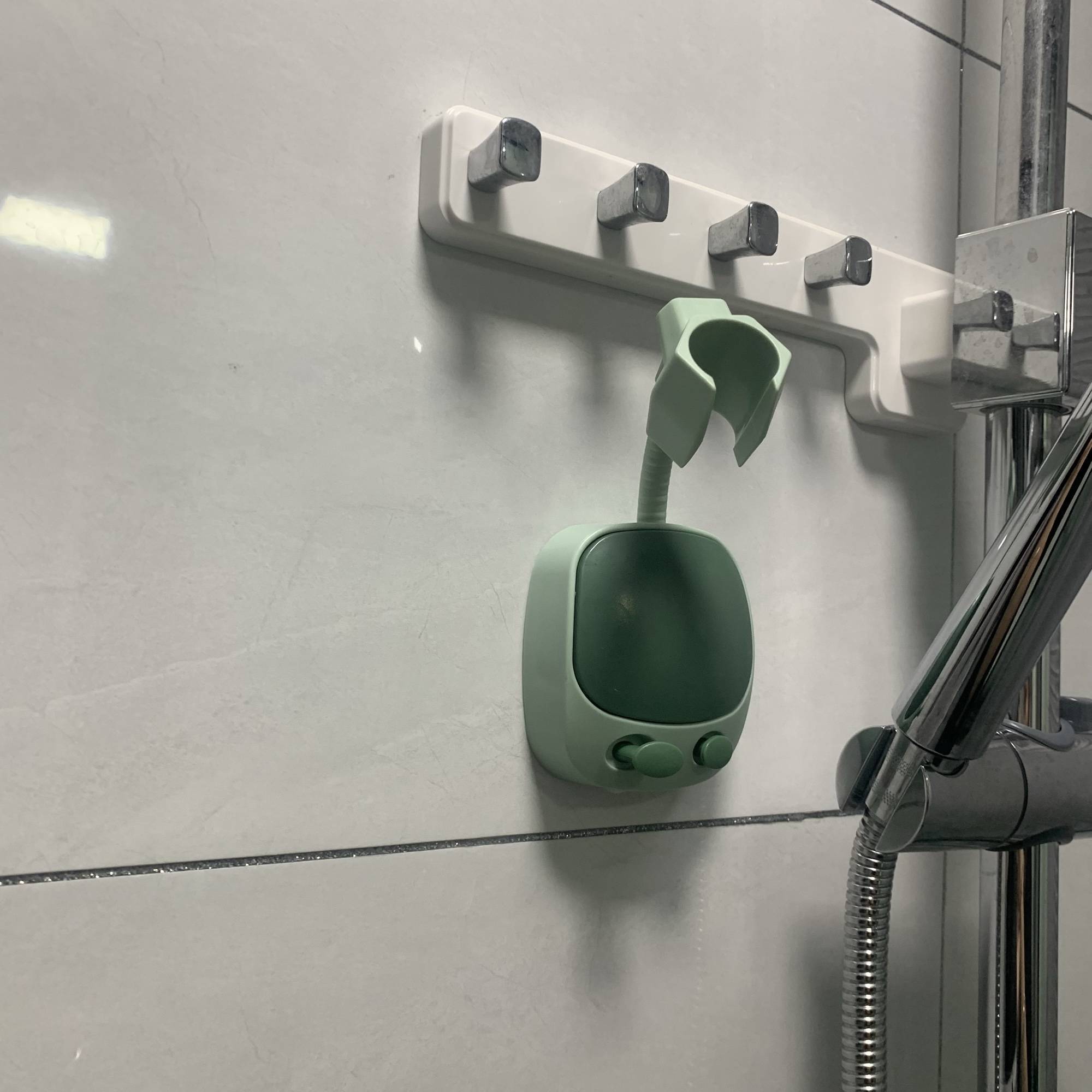 直接贴在墙面上,就可以把花洒卡在上面了,头部还能随意弯曲,调整角度,让宝宝自己冲洗很方便。