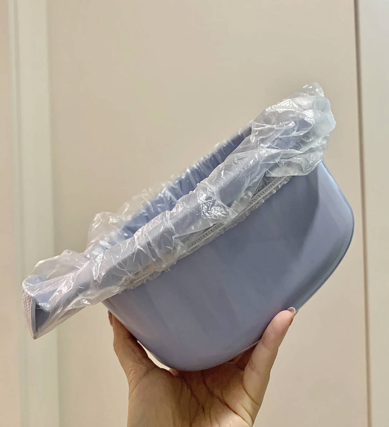 4、保鲜膜套这个小玩意,初看谁都以为是浴帽,但其实是个保鲜膜套,没想到的是,年轻妈妈们为了“偷懒”,又发明出了不同用法。